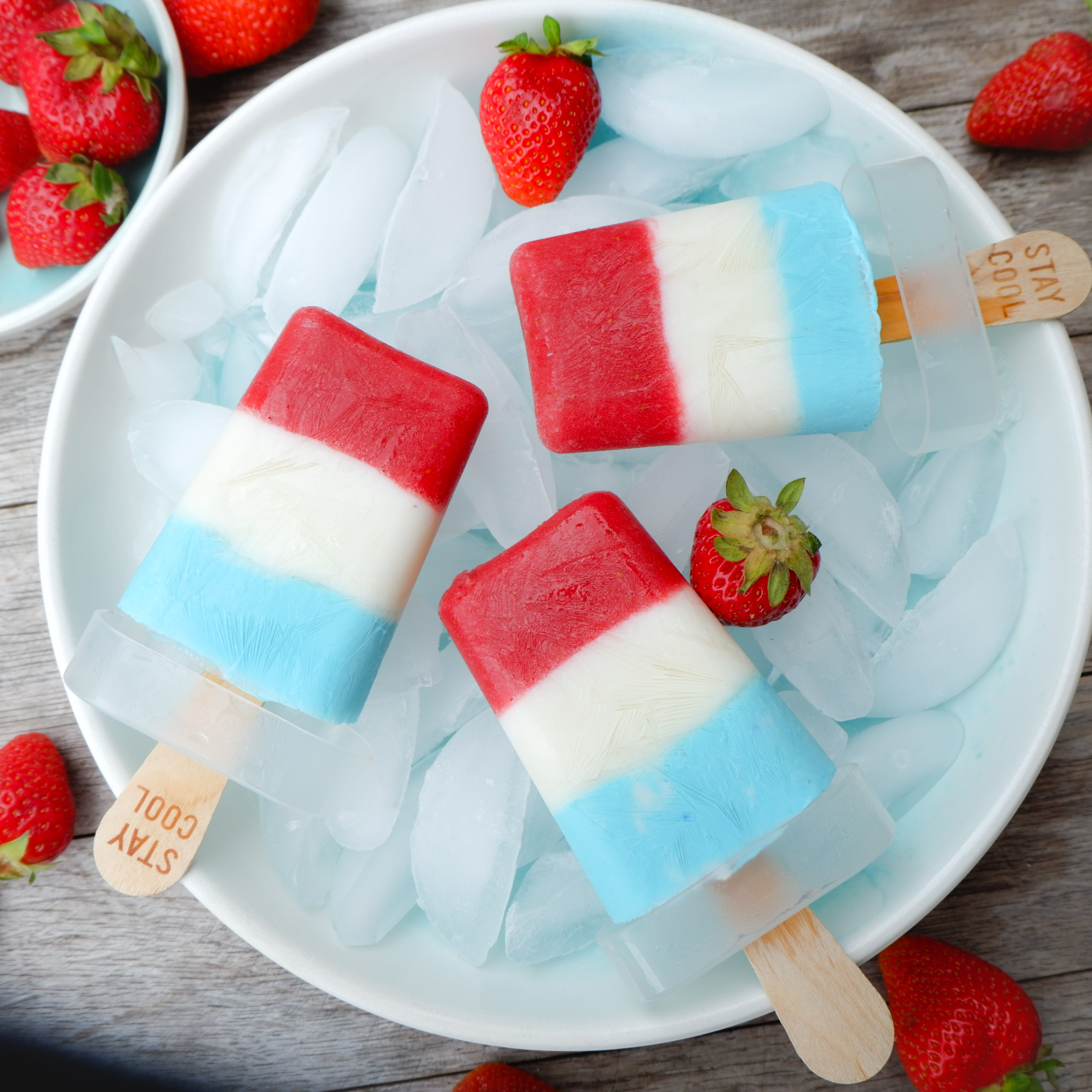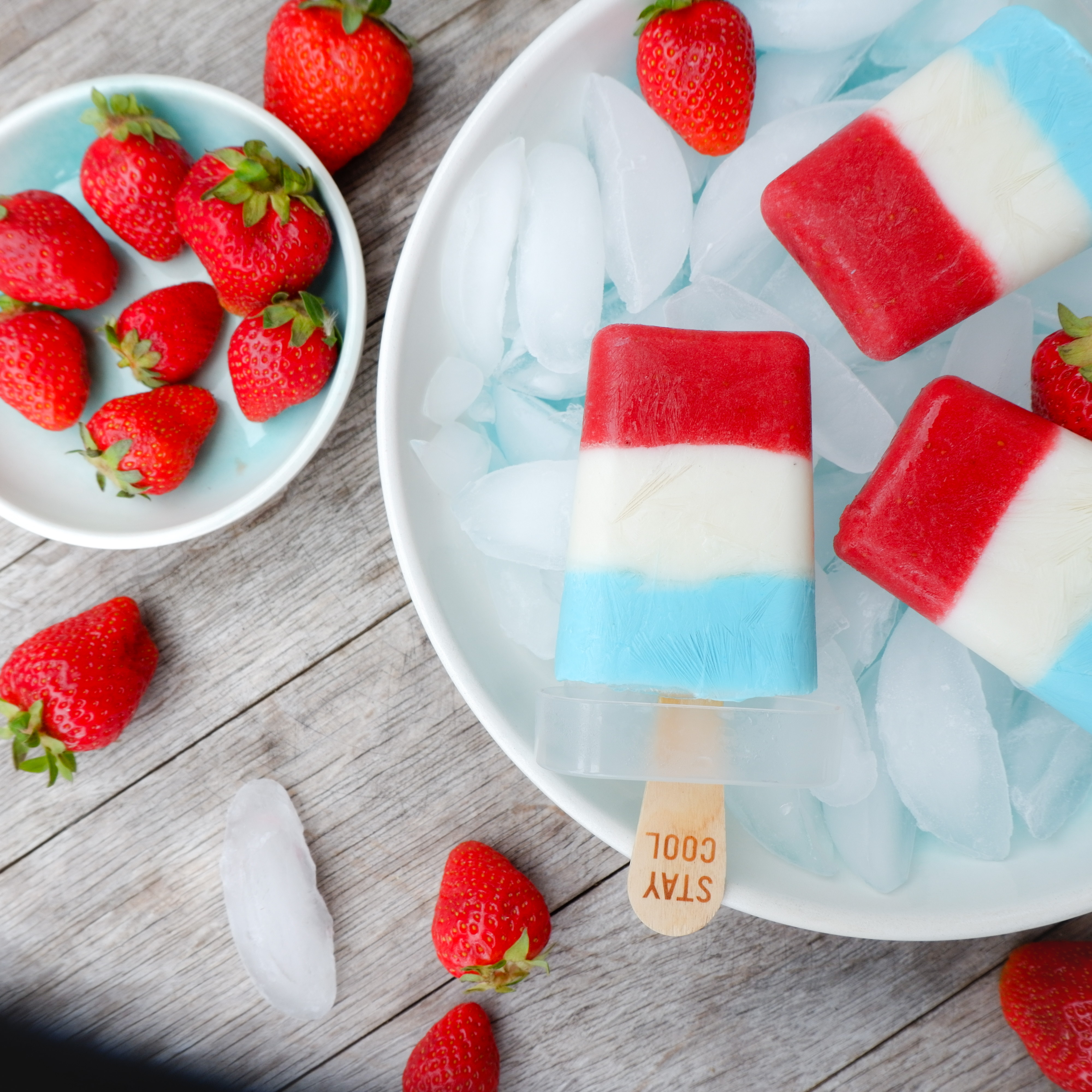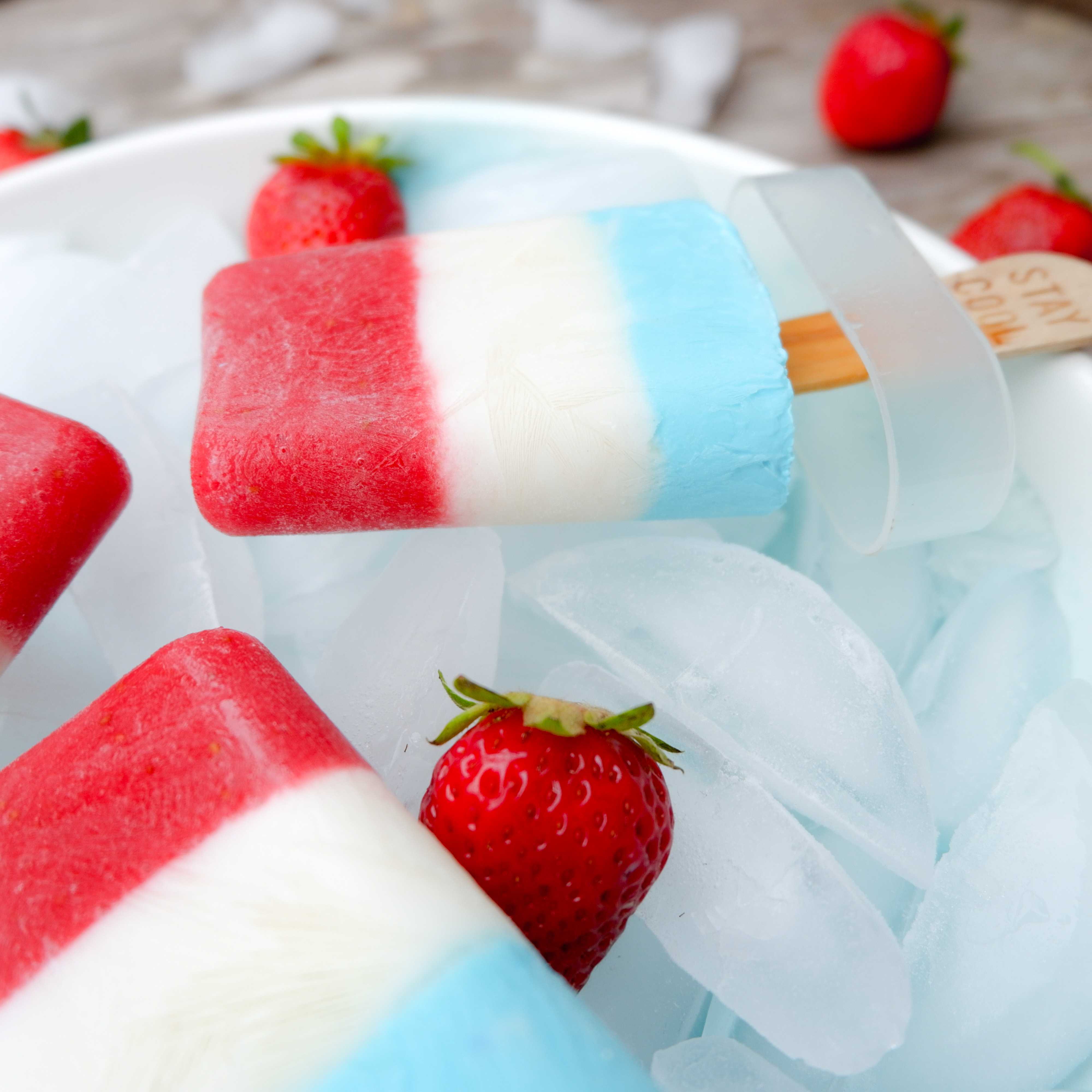 Zu unserem luxemburgischen Nationalfeiertag habe ich mir etwas leckeres einfallen lassen. Da eine Abkühlung an warmen Tagen einfach ein Muss ist und die Temperaturen im Juni schon so einiges hergeben, habe ich mir ein fruchtiges Eis ausgedacht. Erdbeeren, die gerade in den heimischen Gärten und Feldern wachsen, dürfen da natürlich nicht fehlen. Die zwei weiteren Schichten bestehen aus einer einfachen Joghurtbasis und kommen mit nur ganz wenig Zucker aus. Ob als Nachtisch nach dem Grillen oder als kleine Abkühlung zwischendurch, schmeckt dieser super schnell und einfach gemachte Eyecatcher köstlich.